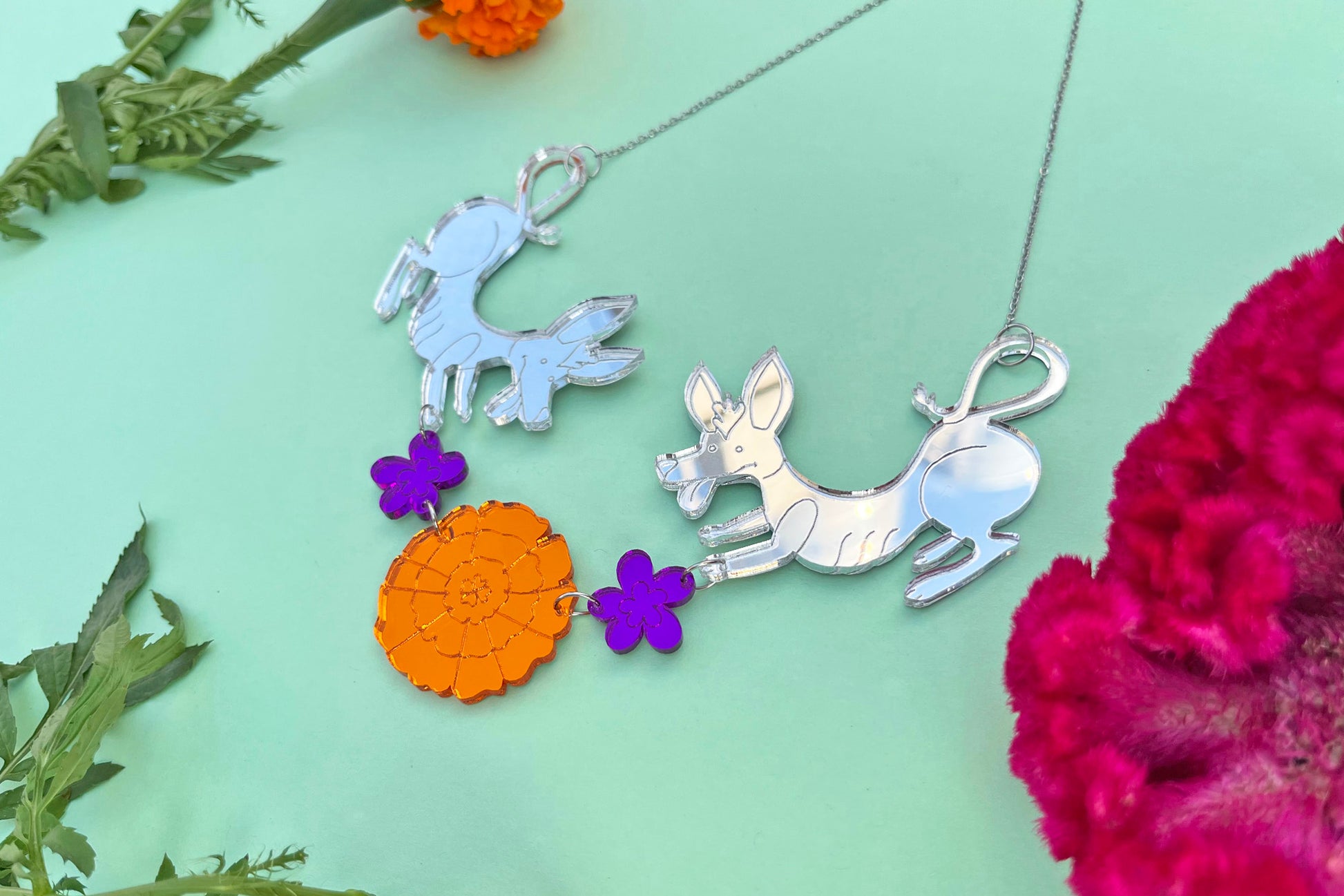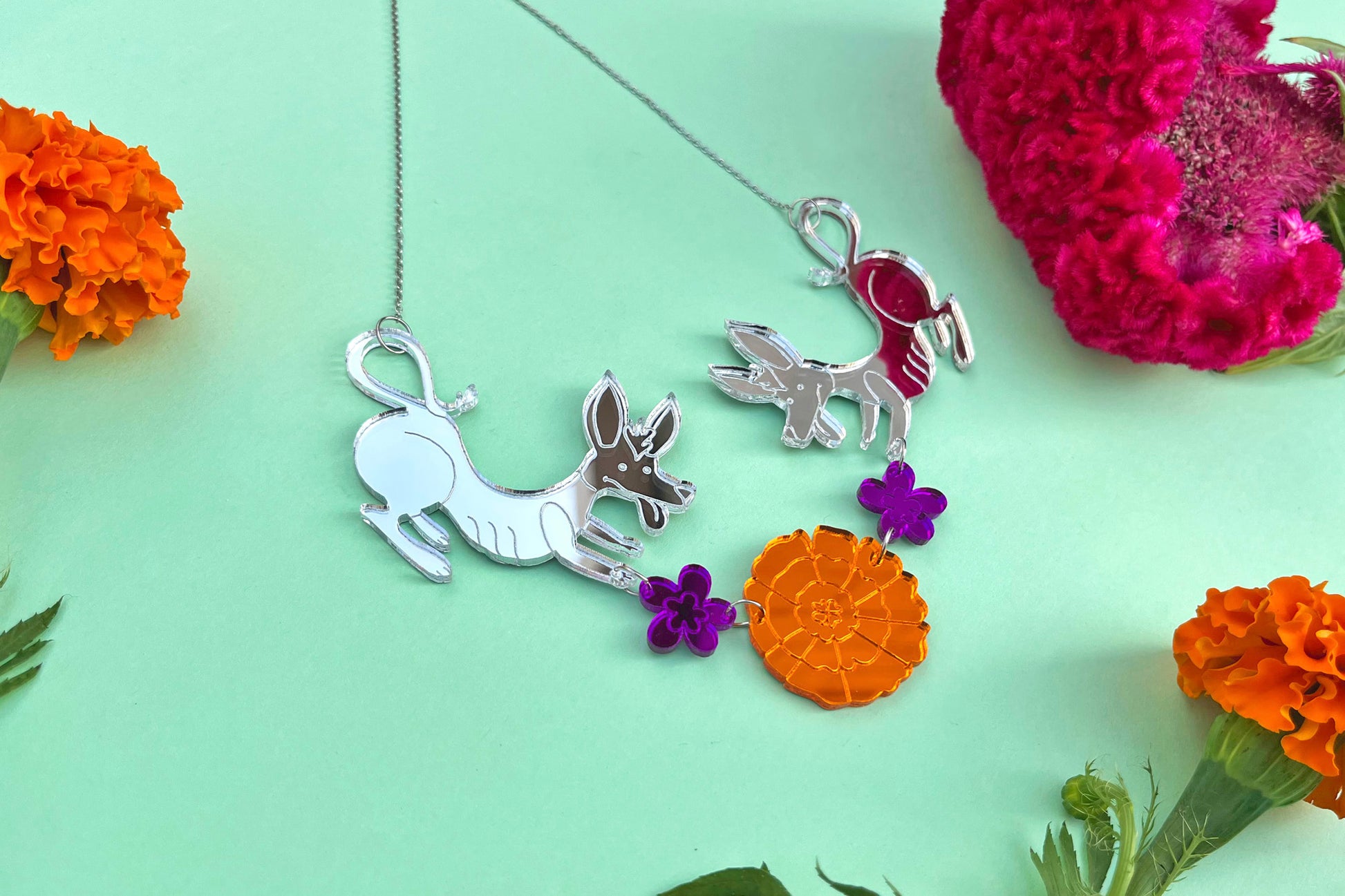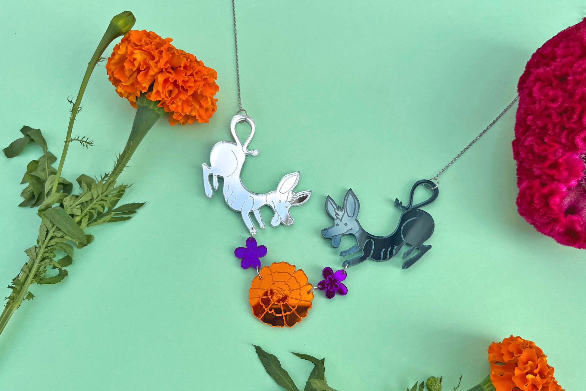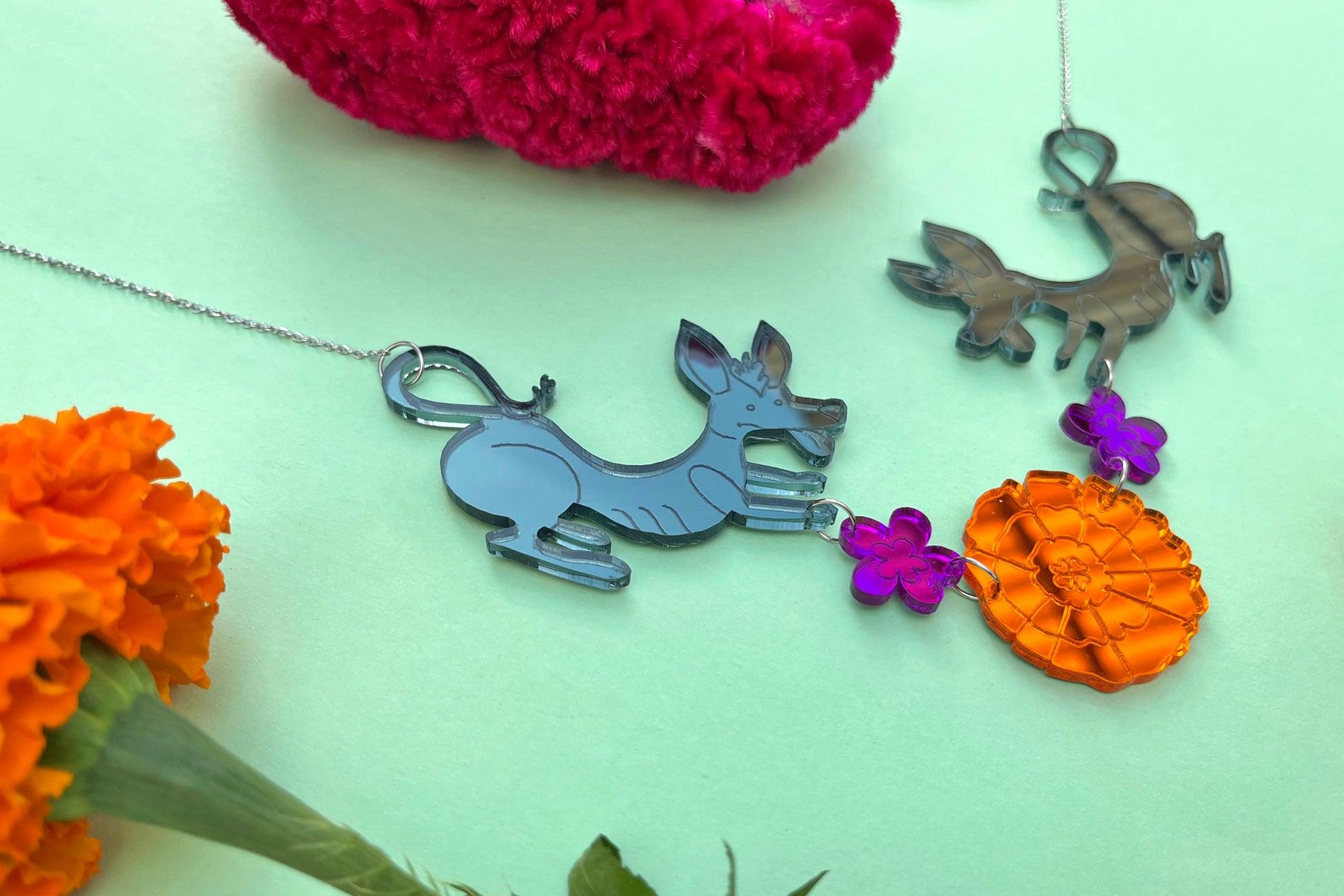 These beautiful jumping xoloitzcuintles are super colorful and fun and are the perfect accessory for this Day of the Dead season.