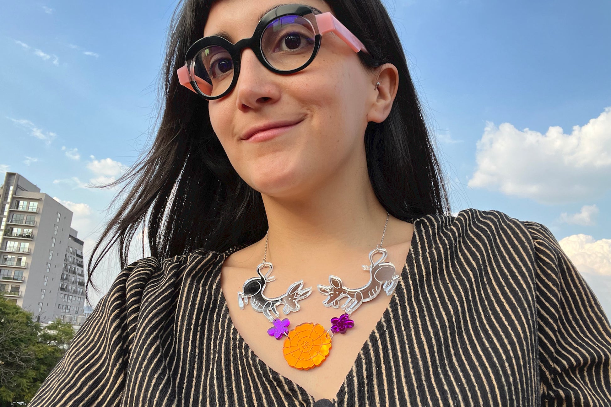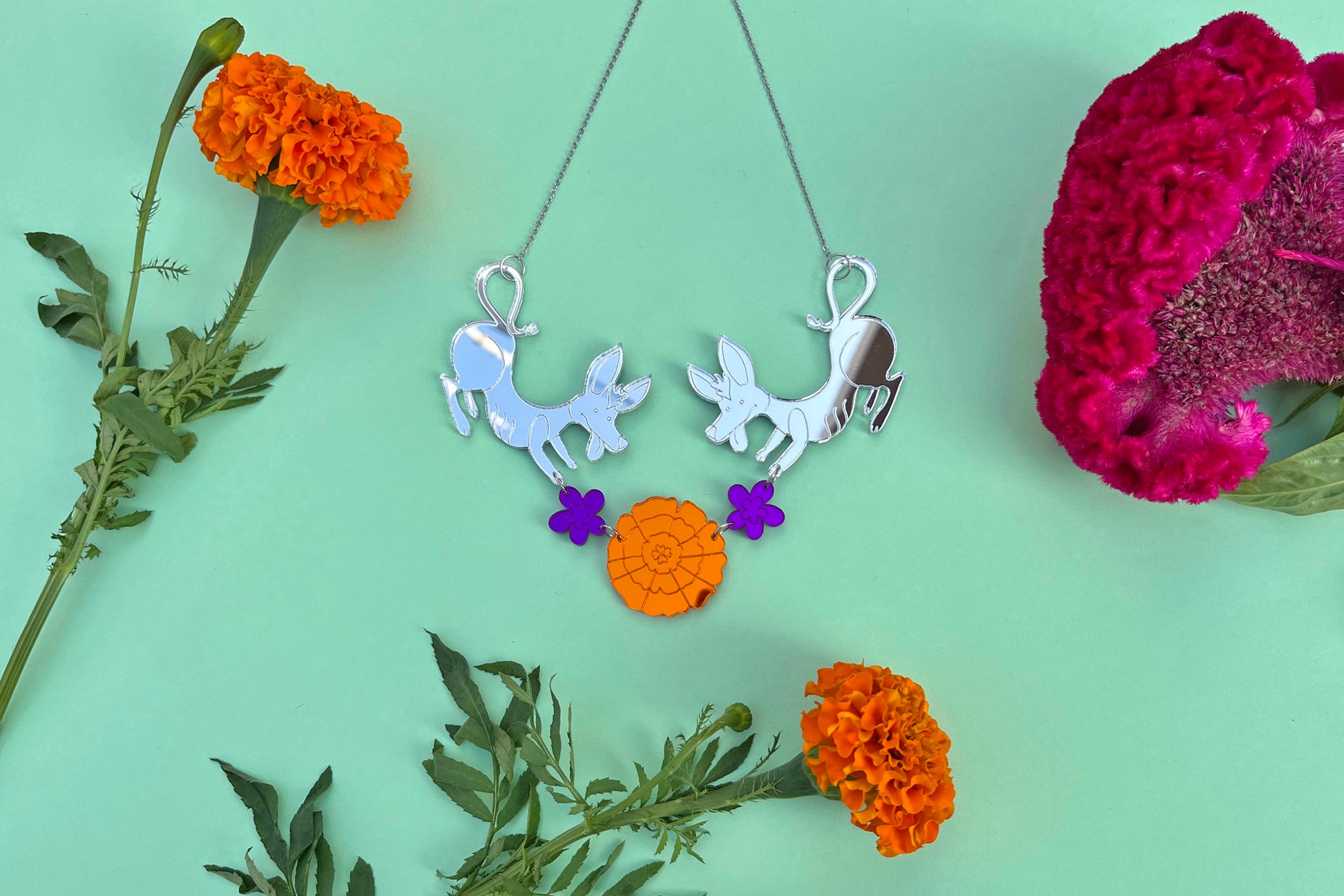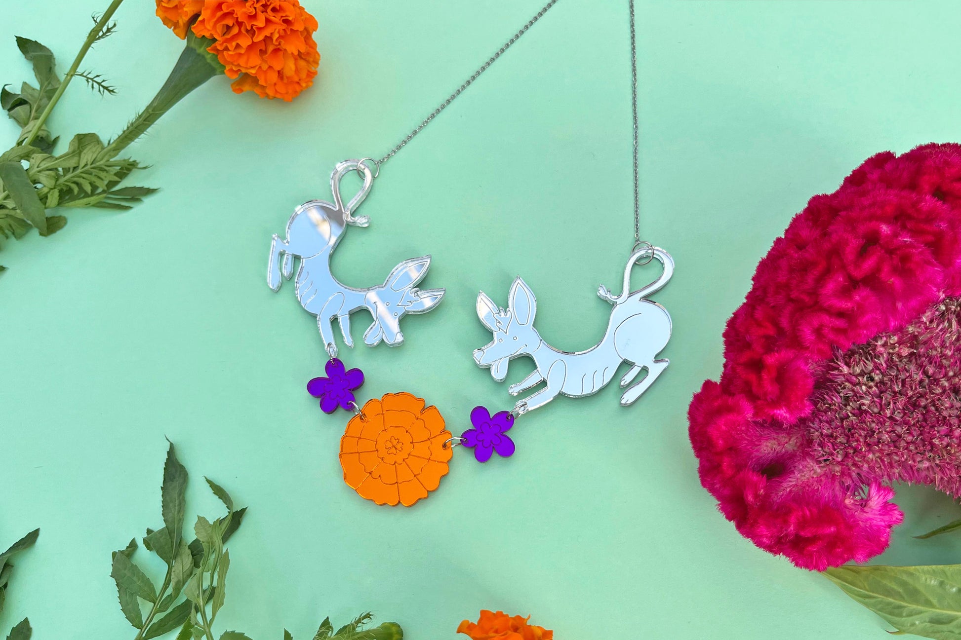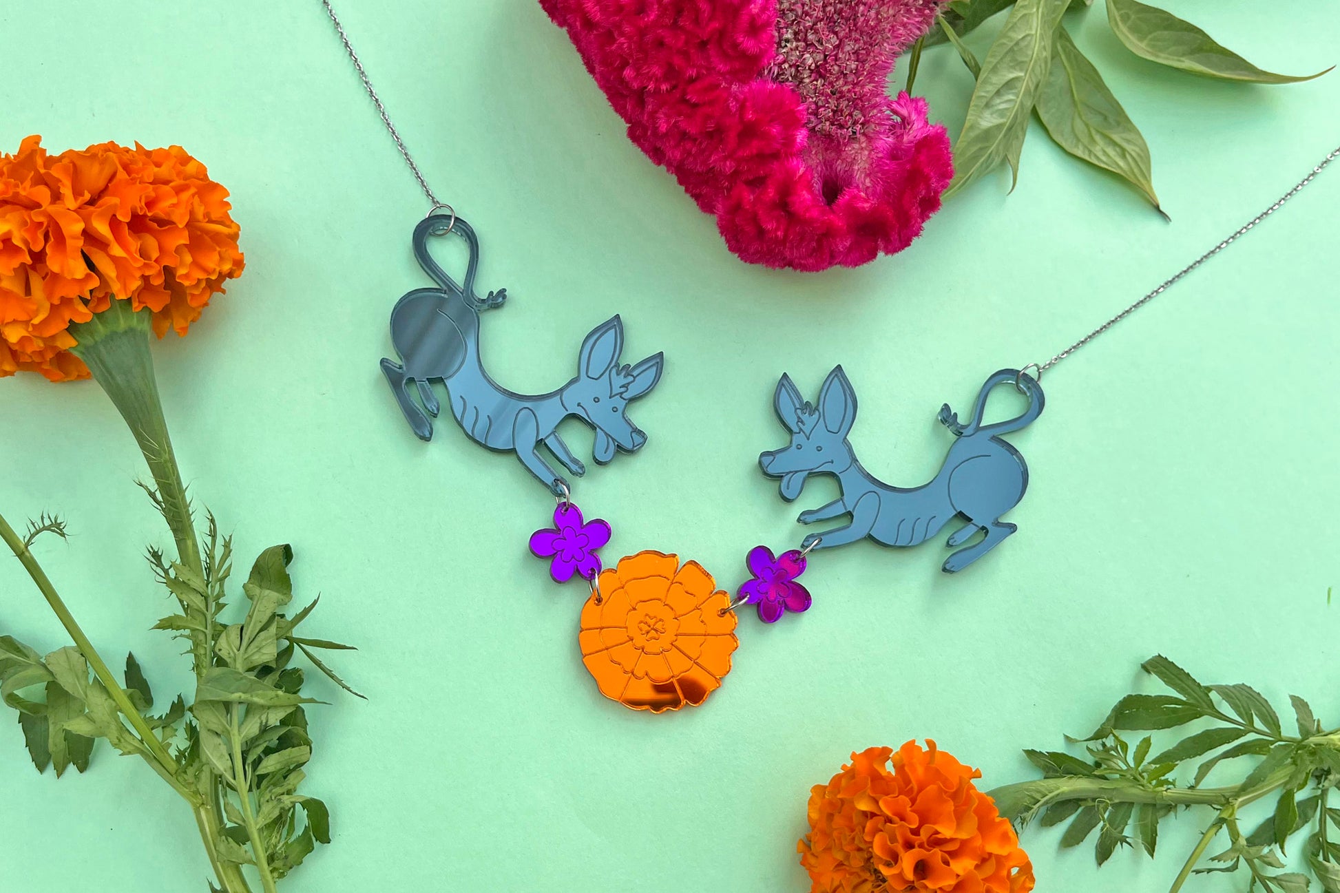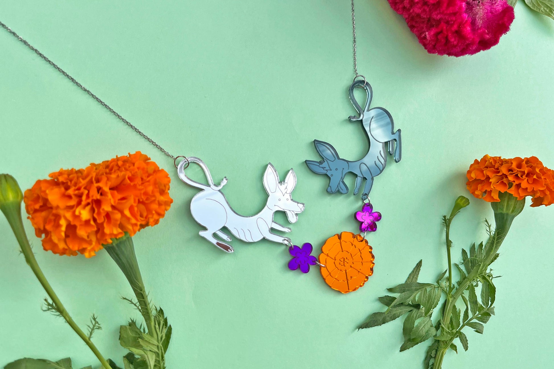 These beautiful jumping xoloitzcuintles are super colorful and fun and are the perfect accessory for this Day of the Dead season.